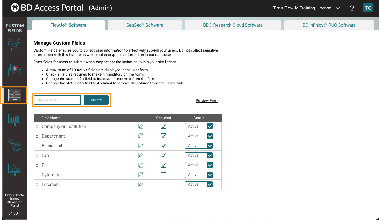 - Change the status of a field to Inactive to remove it from the form.