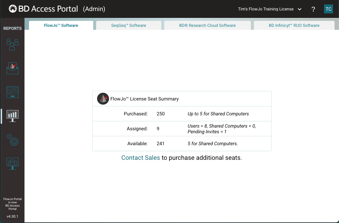 The Reports page gives admins a snapshot on how their seats have been allocated.