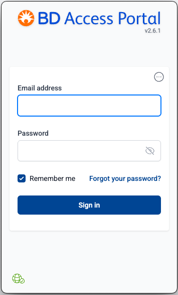 - Enter your BD Access Portal account credentials (Email + Password), then click the Sign in Button