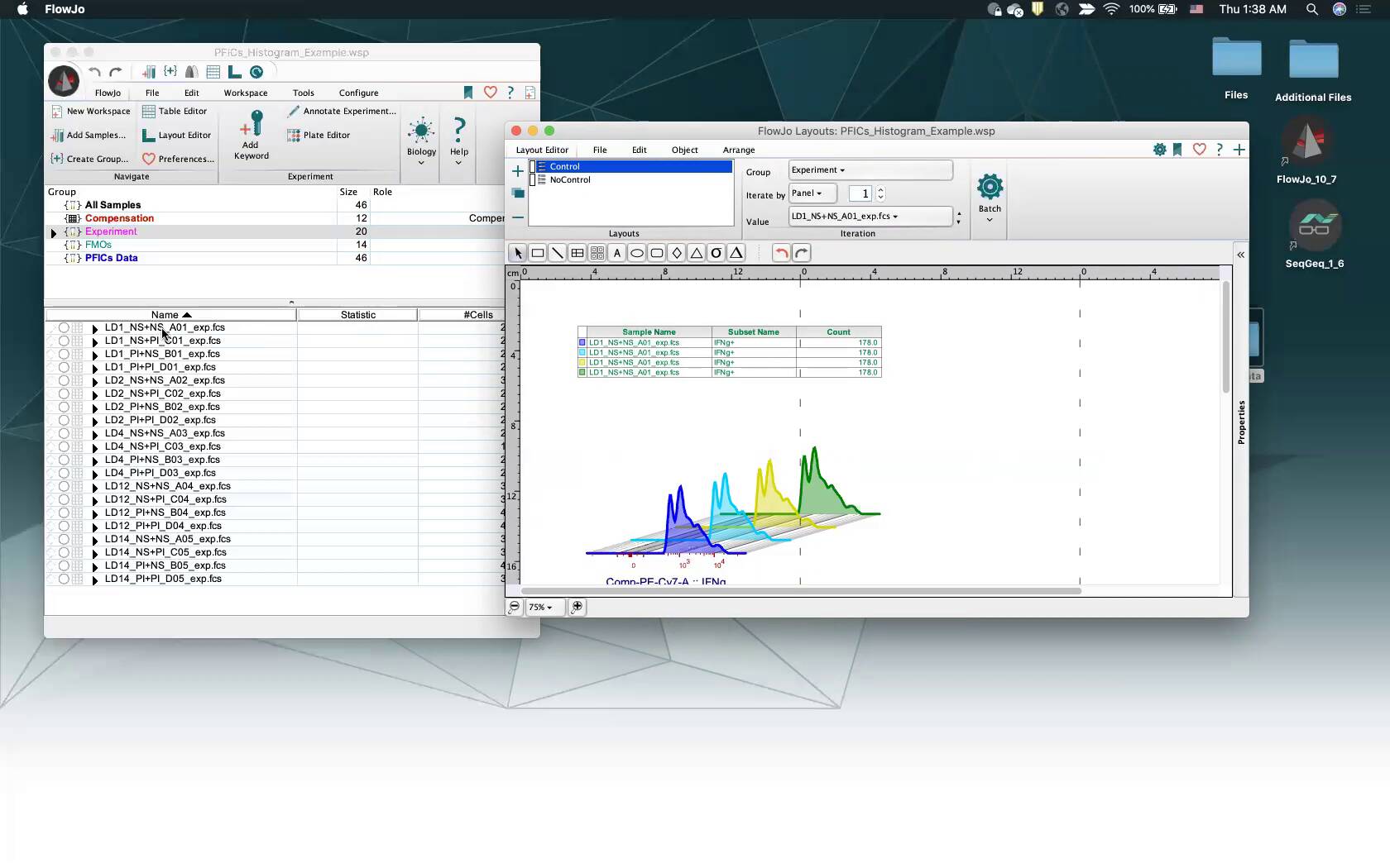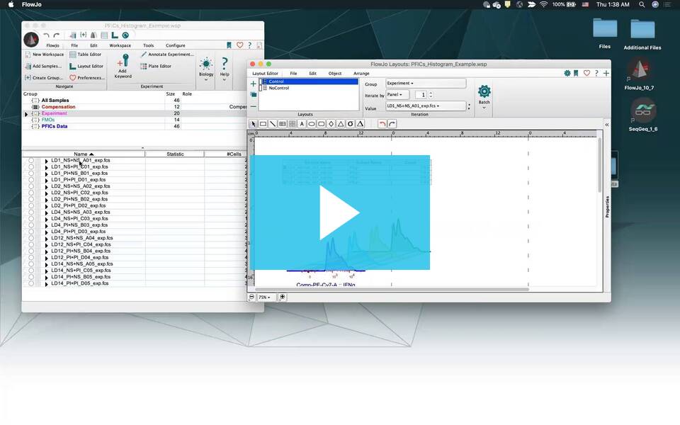 The Layout Editor functions slightly differently because there is an ‘Off’ iteration choice. This is included to allow the user to create a layout that stands alone with no specific order or orientation of samples during discovery. However, when FlowJo encounters a layout page in a template with Iterate set to ‘Off’ it follows this instruction, does not iterate and produces a layout page with empty plots and warning messages that the data files are not present. Additionally, there is a batch option to create new layout pages within that workspace. As these graphs have already been batched, their iteration immediately defaults to ‘Off’ and when they are opened in a template they will contain empty plots. They will also contain the number of plots the original experiment required, which may not be the number of plots a subsequent experiment with a different number of files requires. For these reasons we recommend choosing an iteration setting on all layout pages, removing already batched pages from the template before exporting as a template, and batching fresh when adding new data.