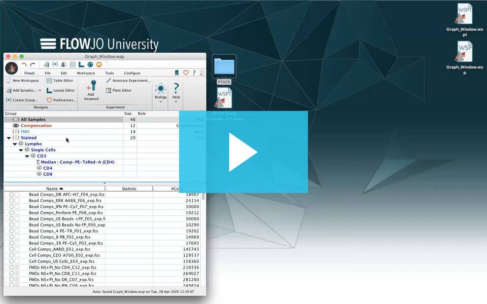 A template is a replica of your workspace file without data. It preserves groups, gates, table definitions, and layouts and allows all of that to be applied to the next data set. A template can be created simply by choosing the ‘Export as a template’ option from the File band after analyzing an initial data set. This will create a .WSPT file in the location you specify. Templates can be used to apply the complete analysis to any subsequent data sets with a matching set of parameters.