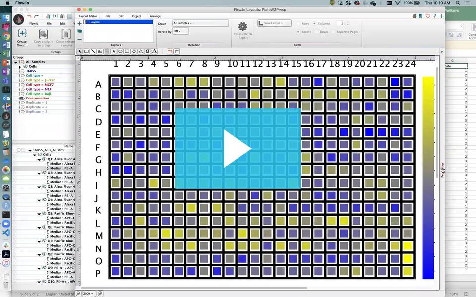High-throughput plate-based assays are increasingly common in flow cytometry. Working with collections of 96, 384, or 1536 wells at a time adds additional dimensionality to the biological questions that can be asked. However, the amount of data produced presents management and annotation challenges. FlowJo’s structured approach to groups supports this throughput, and the plate editor facilitates data annotation and further automated analysis using a template.