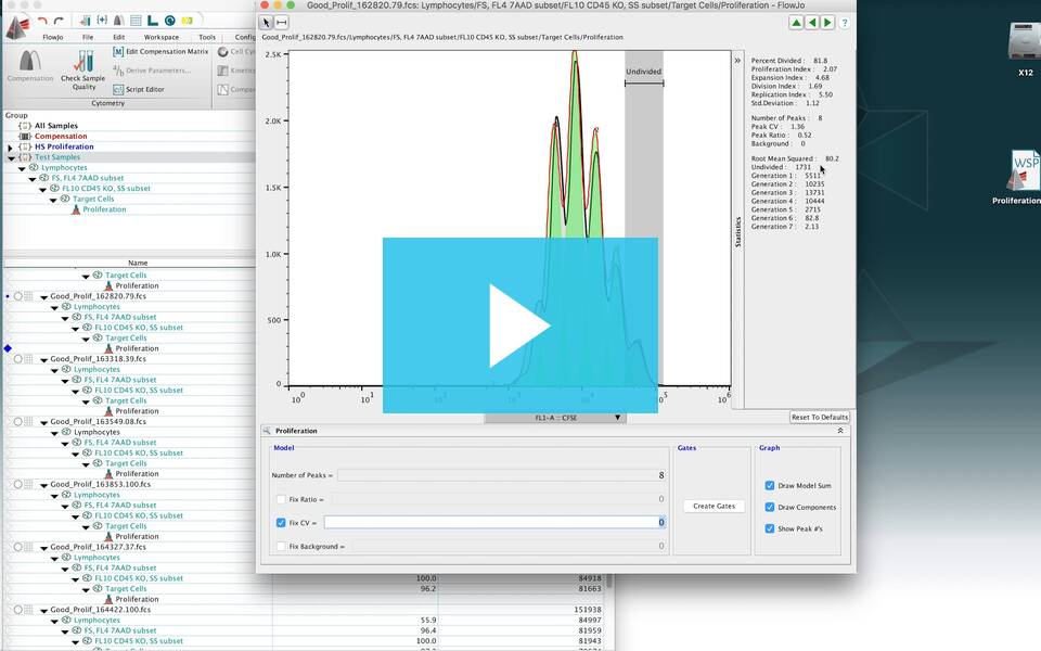 FlowJo’s Proliferation platform allows users to quantify many different common types of proliferation assays which look at cell division over time.