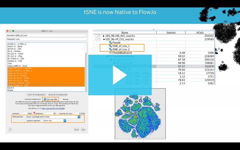 The following video demonstrates how to install plugins and provides an overview of how to use some of the most popular Plugins available in FlowJo. Flow scientist Luthy describes the various functions of plugins and compares some of the pros and cons of the analysis these plugins offer. The scientist then shows how to use several plugins together to generate a robust flow analysis.