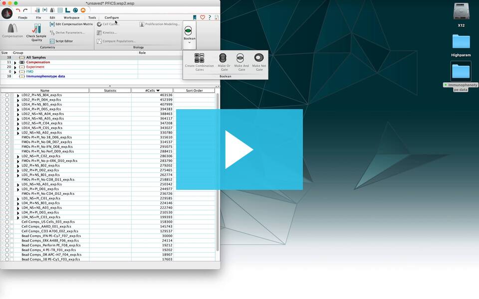 Important: FlowJo workspace files do not store your data files (.fcs, .lmd, or .mqd files). Each time FlowJo runs, it accesses your data files and reads them into the workspace. This means that moving data files can cause a situation where FlowJo will need to be re-associated with them. To avoid this, we highly recommend storing your data files in the same folder where your workspace is stored. To read more about this, go here. To learn about the various components of the workspace, please see the subpages of the Workspace page here.