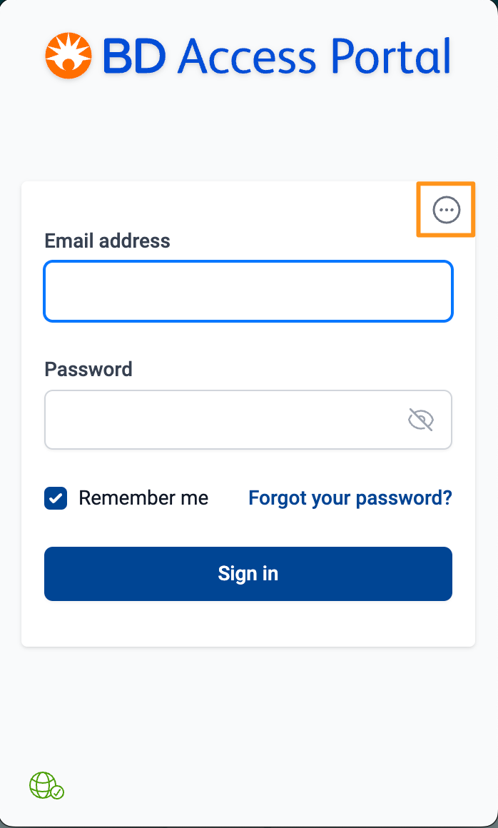 2) Click the three dot (...) symbol in the top right corner of the BD Access Portal Login Window.