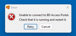 Q. BD Access Portal is running, but the BD Access Portal login window says I have Invalid Credentials when my Portal login information is entered.