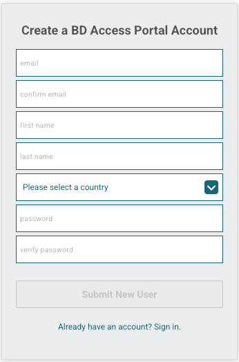 1. Navigate to the BD Access Portal Website and click the "Create Account" link.