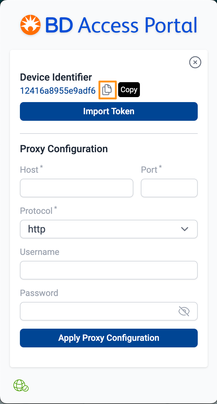 Each computer device is recognized by a unique device identifier (aka fingerprint). To find the device identifier for your computer, open BD Access Portal application and: